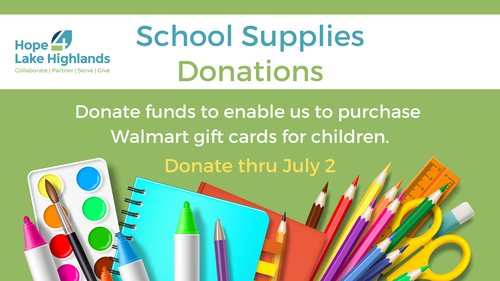 Hope 4 Lake Highlands wants to provide a $50 gift card to each of the 175 children we serve, so that their parents can purchase school supplies in July for the preparation of school starting in August.