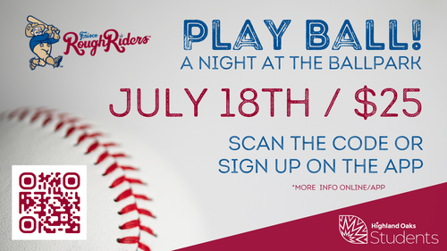 Come and enjoy an evening at the ballpark! The Frisco Roughriders will take on the San Antonio Missions on July 18th at 7:05pm. We'll meet up at the HO Student building at 5:30pm to carpool to the ballpark in Frisco.