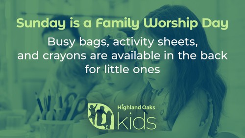 We love the sound of kids and babies in worship. It’s wonderful when they can engage in worship with us. Whenever you feel the need to allow your kids to move around and stretch their legs, feel free to walk them to the back of the Fellowship Hall, grab busy bags, activity sheets, and crayons.
