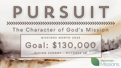 Our theme this year is “Pursuit: the Character of God’s Mission,” and each week we’ll consider how God pursues all humanity and creation in order to reconcile it all back to Himself.