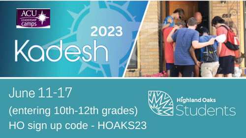 Kadesh provides opportunities for the Word of God to speak to campers in a way that will transform the way high schoolers think and live. Campers will be equipped to become active disciples by providing opportunities for practice and leadership within community groups. The camp is open to students who will be entering 10th, 11th, 12th, and college freshmen the following fall.